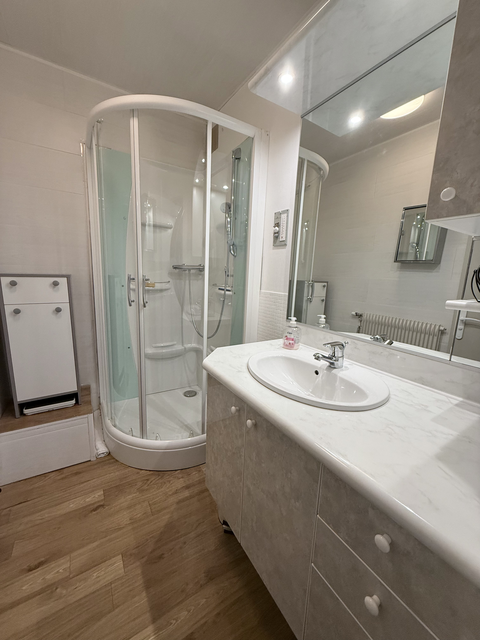 Une grande chambre, dégagement, une salle d'eau, WC séparé.